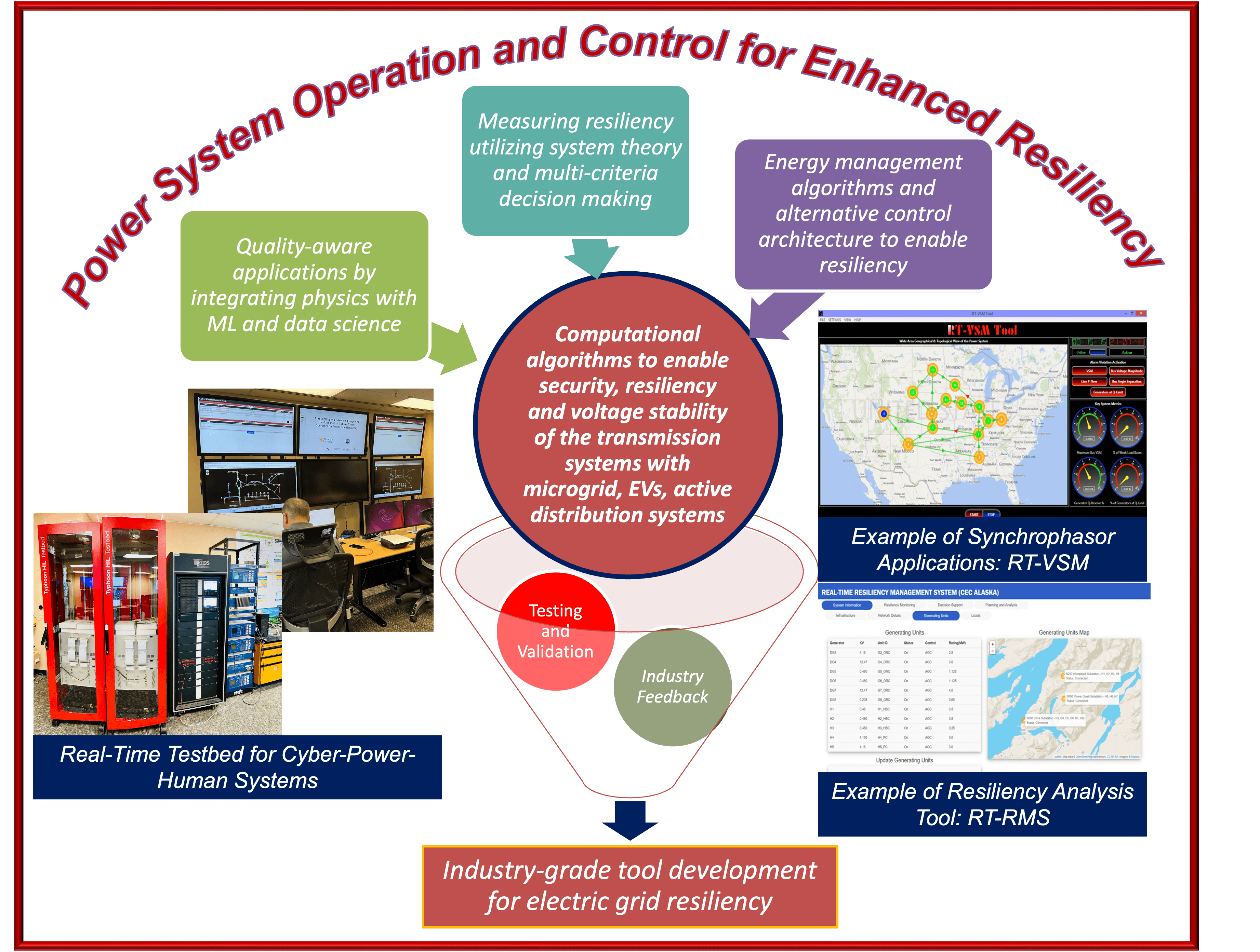 Develop cybersecure and resilient power system operation and control algorithms using smart grid data, while ensuring real-time validation and continuous enhancement of these algorithms for effective system performance and security.